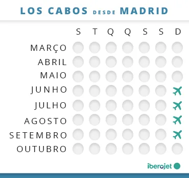 Também é relevante saber quando viajar para Los Cabos, prestando atenção a vários fatores cruciais como o clima ou o preço. Os visitantes costumam viajar para Los Cabos no início da primavera ou durante o inverno, mas deves saber que nesta época os preços são mais altos. O mesmo acontece durante o verão, quando está mais calor e Los Cabos está mais cheio. O outono é a época em que encontrarás menos visitantes, mas há mais risco de chuva.